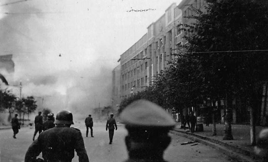 24 вересня 1941 р., на п’ятий день нацистської окупації Києва, на Хрещатику зненацька пролунала серія потужних вибухів, що зруйнувала значну частину історичного центру міста. Всього було підірвано і пошкоджено пожежею близько 200 будівель, серед них – 5 найбільших готелів, 2 універмаги, 5 кінотеатрів, консерваторія, центральний поштамт, будівля міськради, будинки архітектора та вчених, а також найвища житлова споруда тогочасного Києва – 12-поверховий “хмарочос” Гінзбурга.